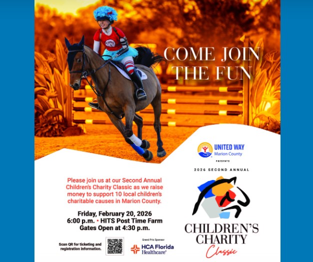 Join us for a Vision for extraordinary change! The United Way of Marion County is hosting the second Annual Children’s Charity Classic on February 20, 2026, at HITS Post Time Farm located at 13710 US 27, Ocala, FL 32688. For more information click on the link: https://www.uwmc.org/childrens-charity-classic or contact the United Way at 352-732-9696.